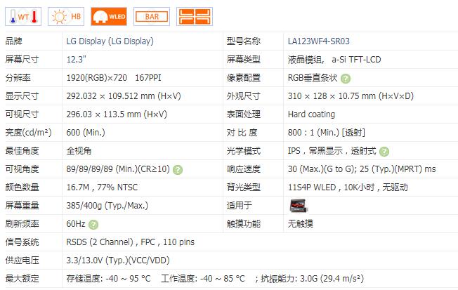 產(chǎn)品名稱:LG12.3寸LA123WF4-SR03車載液晶屏